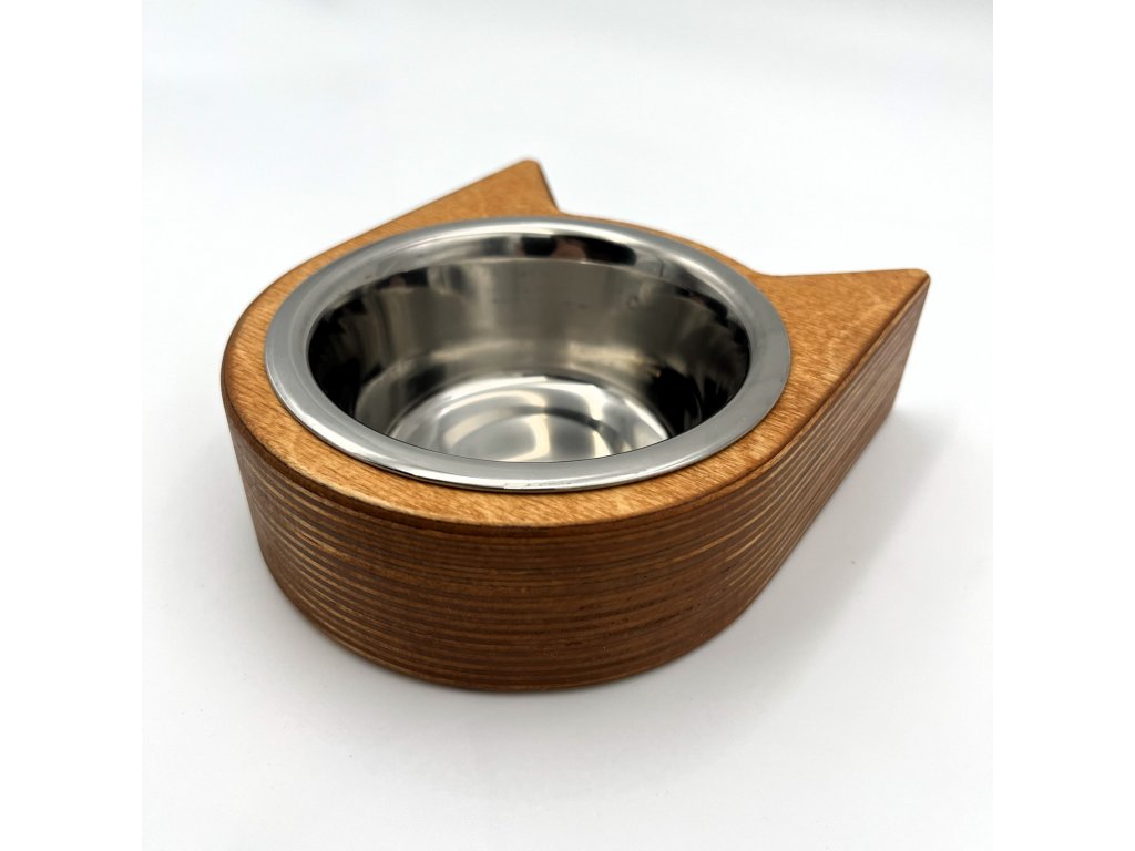 Luxusní doplněk do domu či bytu, pro milovníky kočiček. Dopřejte svým nejmilejším kvalitní pohodu stolování. Nerezová miska o objemu 200ml na vyvýšeném dřevěném podstavci. Stylový zvířecí nábytek.